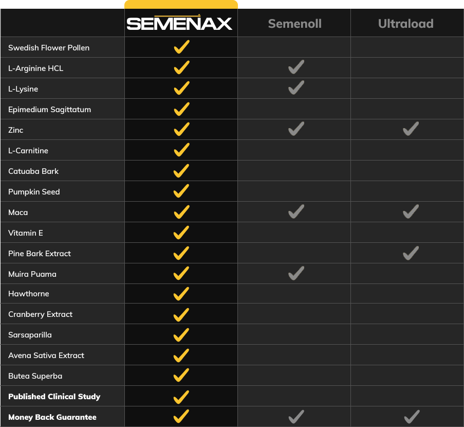 Just take a look below at the comparison chart between Semenax® and our competition.